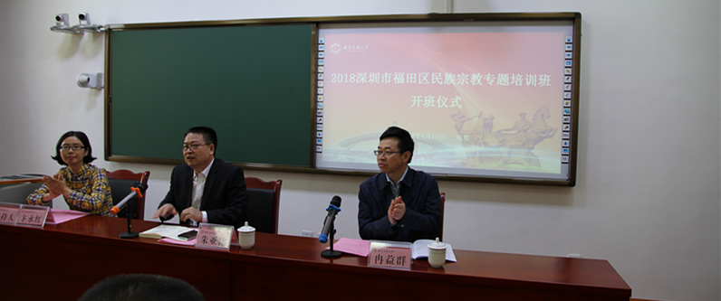 4月16日上午,“2018深圳市福田区民族宗教专题培训班”在我校开班。深圳市福田区区委统战部常务副部长、民宗局局长朱亚铭,学院分党委书记冉益群,以及65名培训学员出席了开班仪式。开班式由学院培训科副科长卞永红主持。