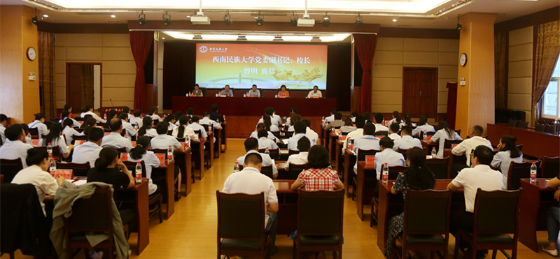 曾明校长在致辞中介绍了学校和全国法院藏汉双语法官培训的基本情况。他表示,一直以来,学校高度重视全国法院藏汉双语法官培训工作,精心选配优良师资,紧紧围绕双语审判工作开展教学,着力提高双语法官利用语言优势解决法律问题的综合素质,大力促进双语法官司法能力的提升。为确保做好此次培训,经最高人民法院和国家民委同意,增加了“学员选拔测试”环节,挑选了具有较好语言基础和较大培养潜力的双语骨干法官参加培训。培训班的举办,正是贯彻落实党的十九大精神和中央民族工作会议精神的重要举措,也是落实最高人民法院和国家民委共同印发《关于进一步加强和改进民族地区民汉双语法官培养及培训工作的意见》、推动实施双语法官“千人计划”的具体体现;既是推进民族事务治理法治化的必然要求,更是民族地区各族干部群众的迫切愿望。